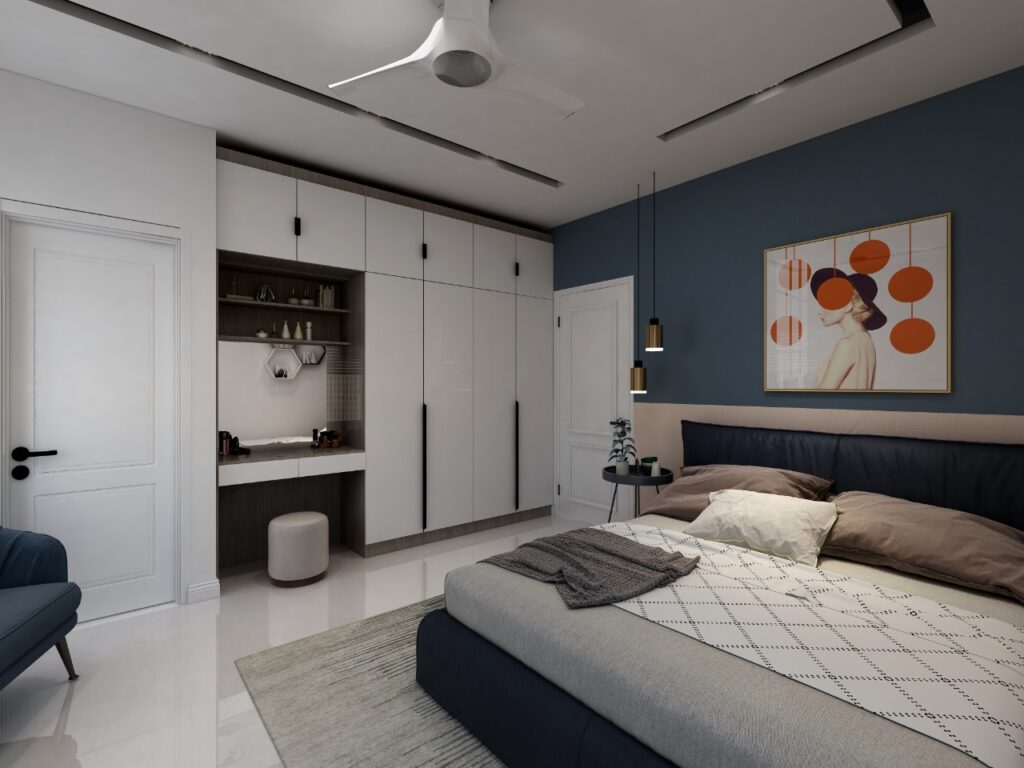 If you need a workspace in your bedroom, consider a corner desk. Placing a desk in the corner of your room takes advantage of underutilized space and minimizes the visual impact of a larger work area. Pair it with a comfortable chair, and you have a functional home office right in your bedroom. Choosing the right spot for corner desks can sometimes be confusing, but expert interior designers in Trivandrum can guide you for the best placement, enhancing your home interior design.