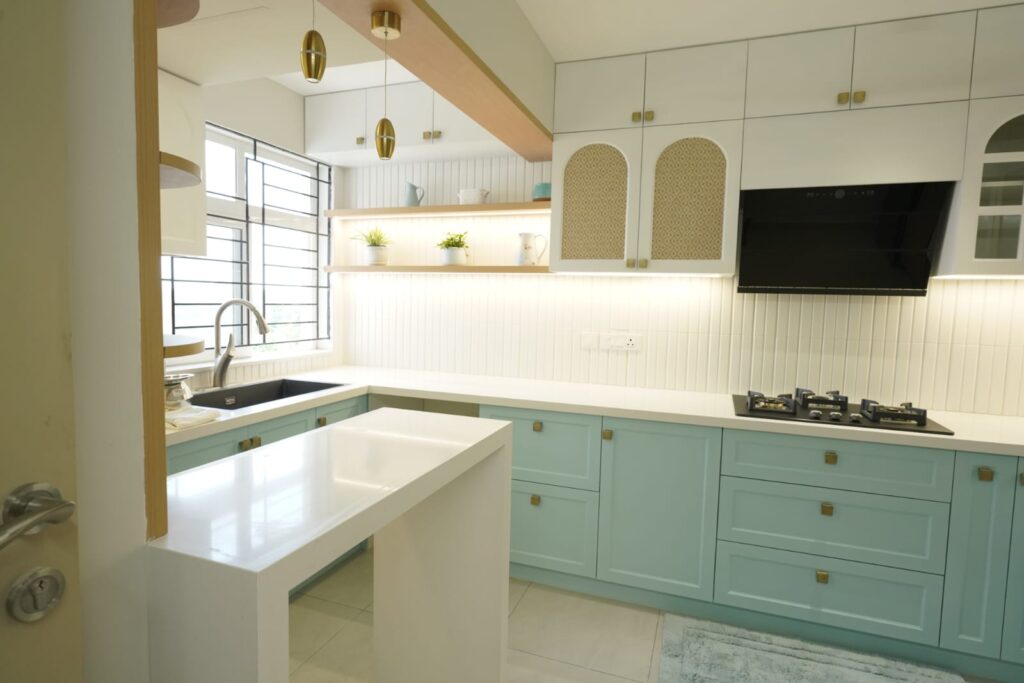 Kochi’s refreshing sea breeze deserves to flow through your kitchen. Large windows or floor-to-ceiling glass doors not only invite natural light but also bring in that airy, coastal feel. When planning modular kitchen designs in Kochi, choose window frames that complement your cabinetry—think sleek whites, soft beiges, or light grays for a clean, spacious look. Pro Tip: Opt for sheer, lightweight curtains to maintain privacy while letting Kerala’s sunshine pour in.